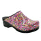 BJORK Peace open back leather clogs feature a paisley / peace print in beautiful colors. Made from printed leather. The Peace clog is based on the classic yet functional Swedish clog silhouette, hand-made in Europe. It delivers all day comfort, thanks to its softer insole and arch support design.