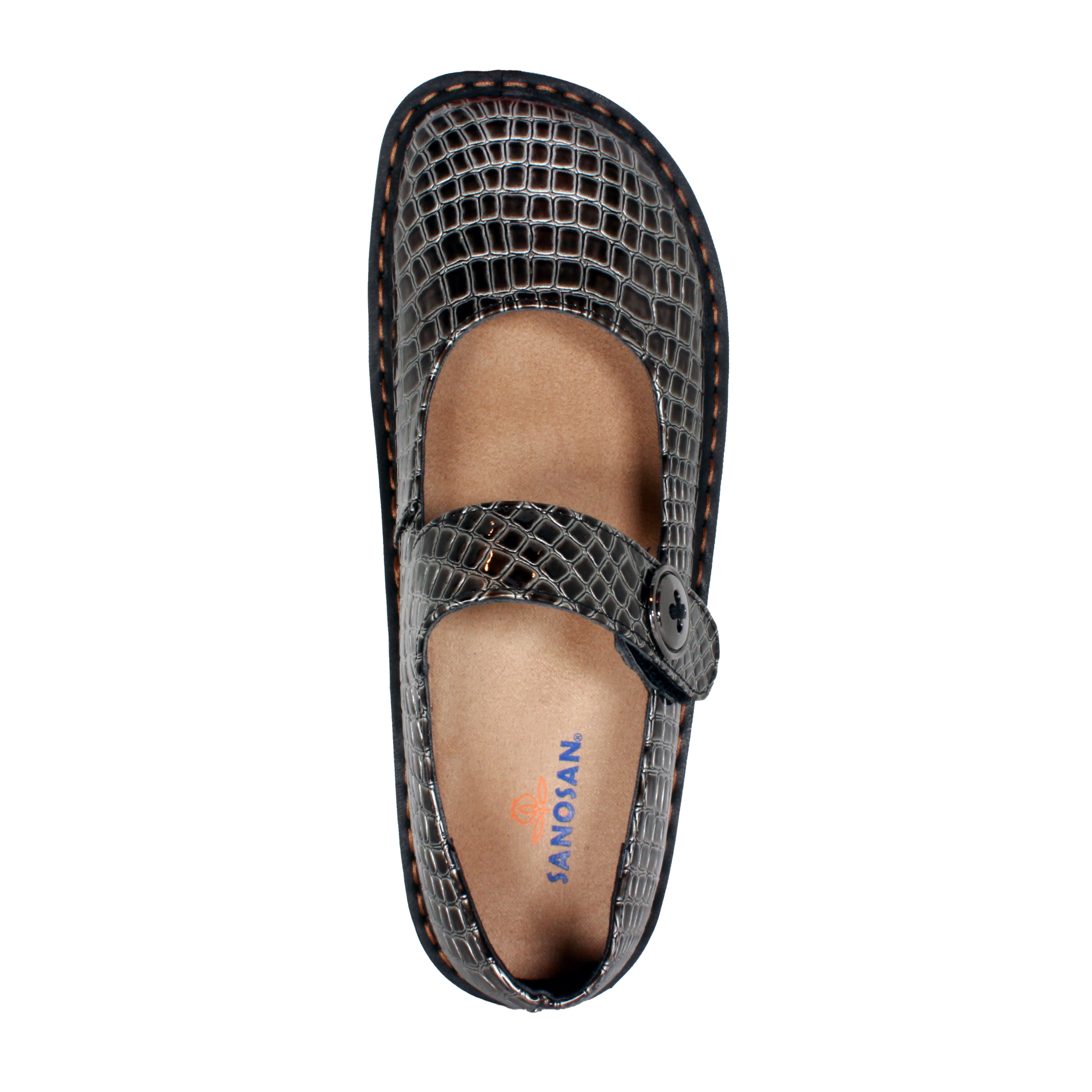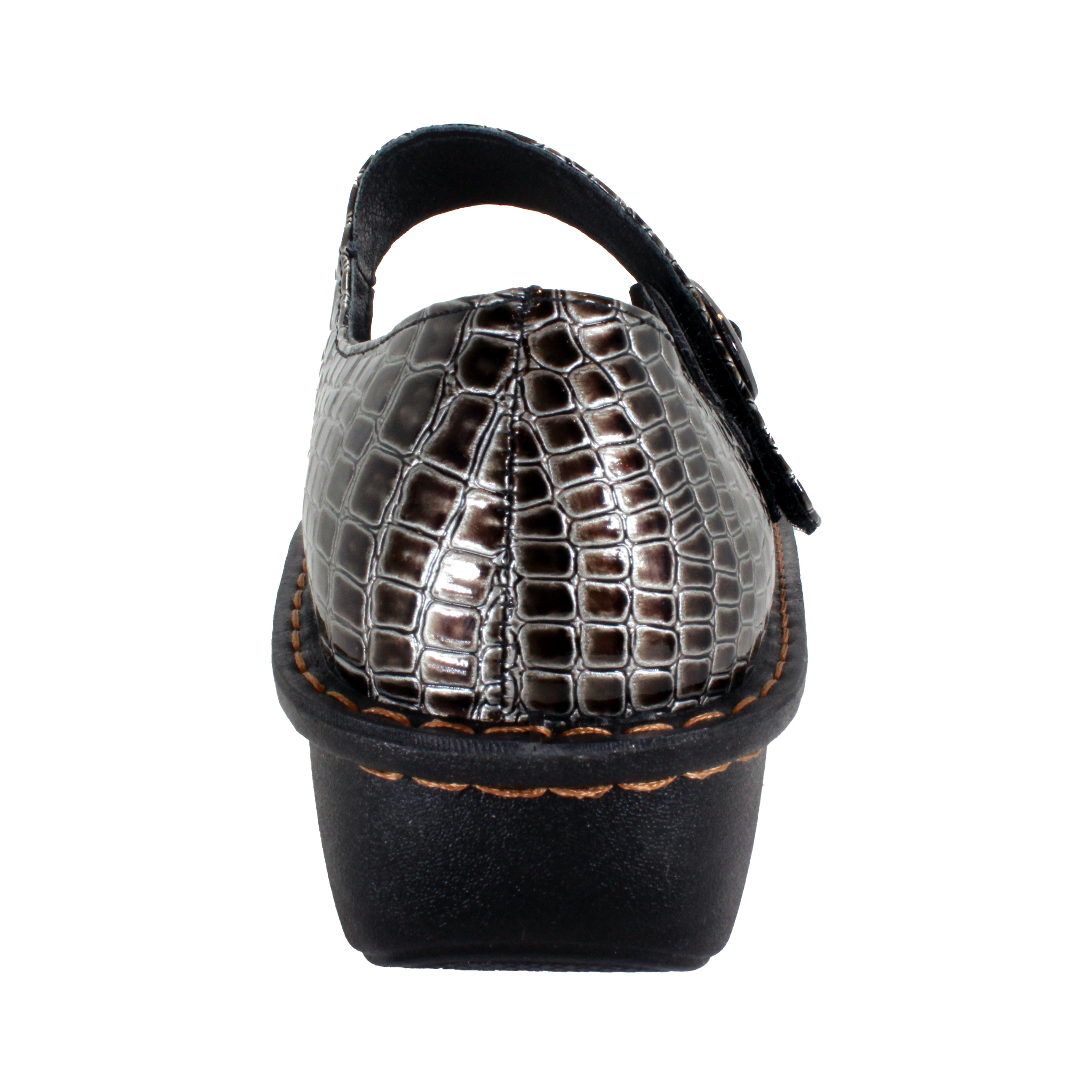 Sanosan Julia Comfort Mary-Jane Clogs in Pewter Croco patent