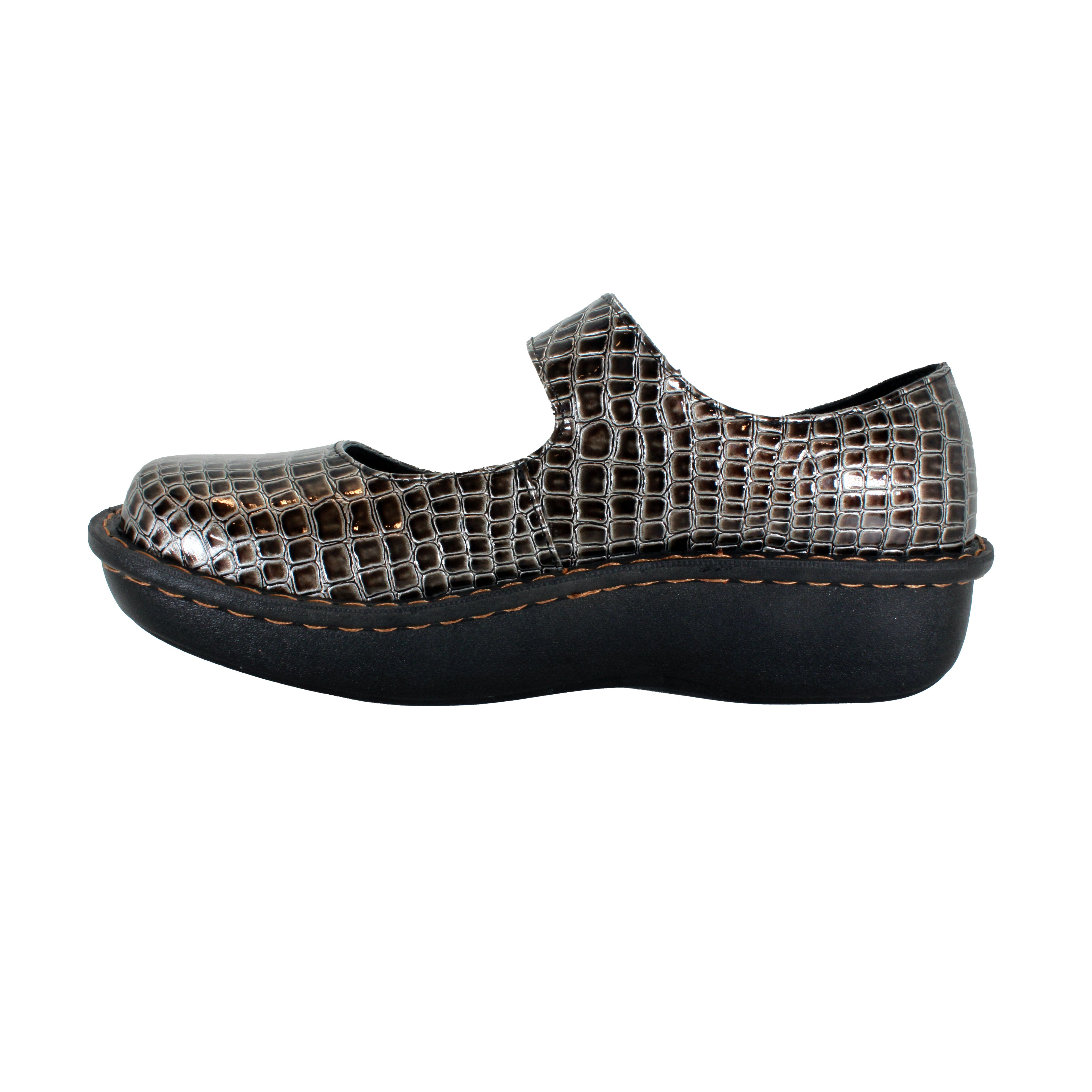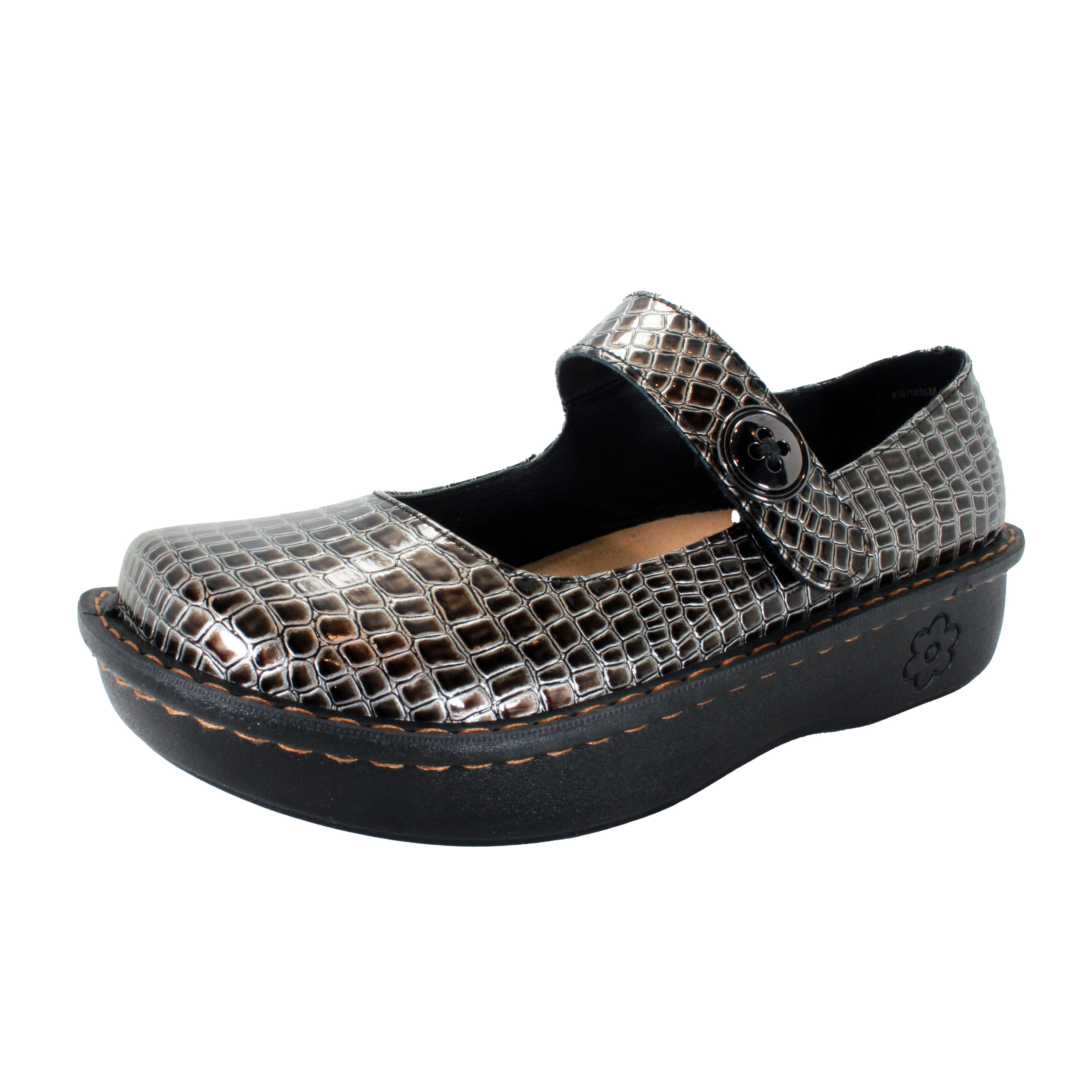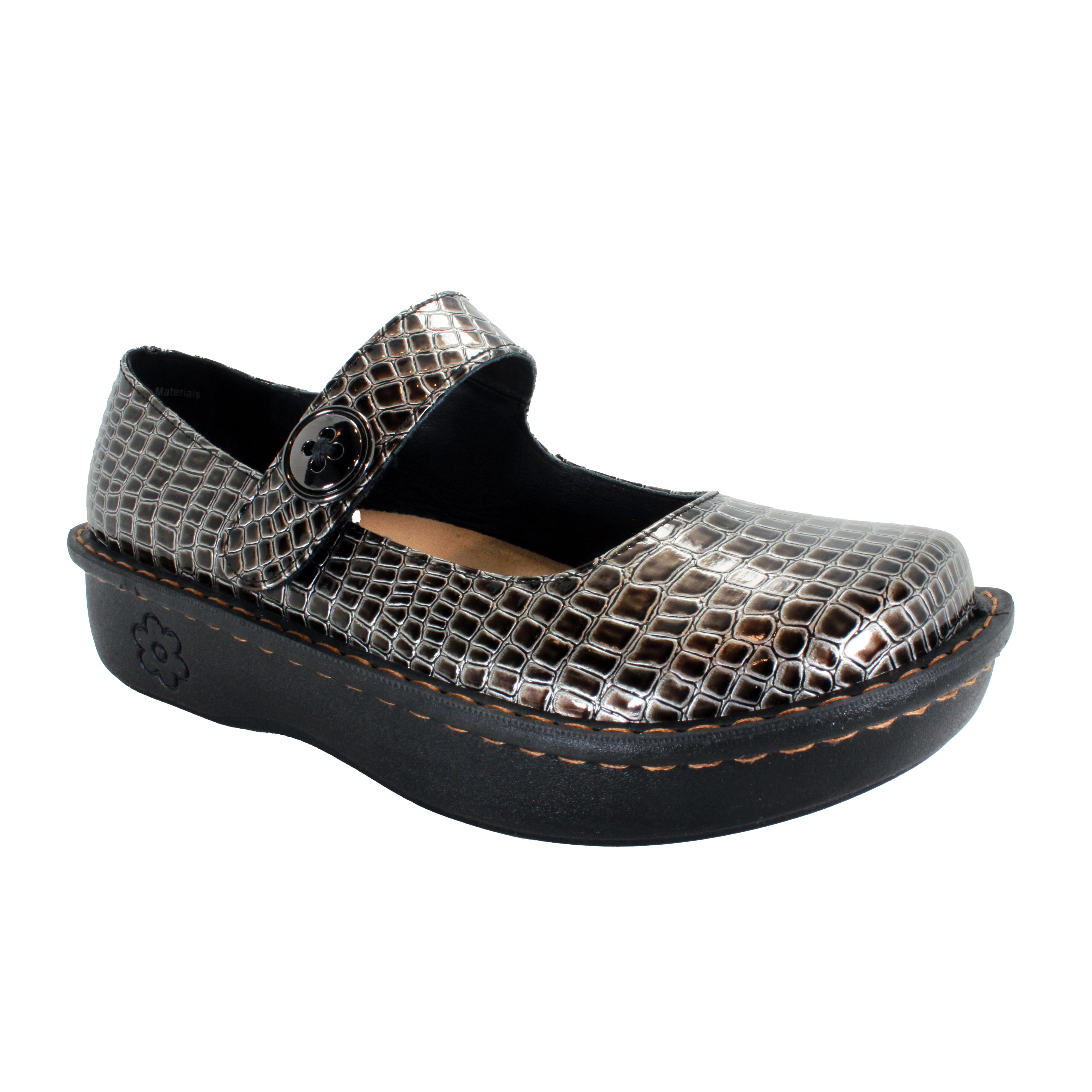 Step into stylish comfort with Sanosan Julia Comfort Mary-Jane Clogs. The adjustable Velcro strap, arch support, and removable ergonomic footbed provide ultimate comfort. The slip-resistant rubber outsole ensures safety while the embossed Pewter Croco patent print adds a touch of elegance.