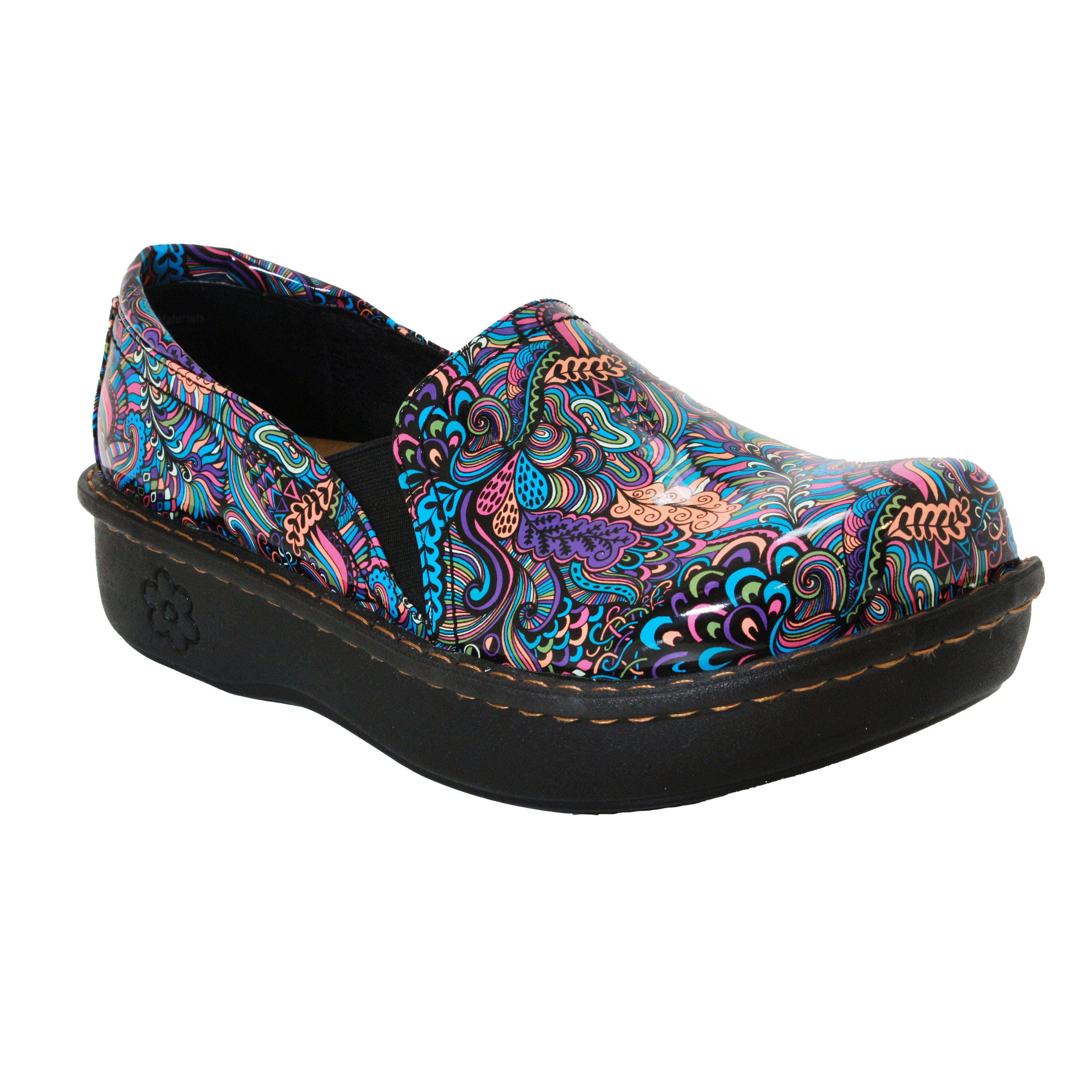 Experience ultimate comfort with the Sanosan Maria Slip-On Clogs in vibrant Mardi Gras print. These shoes are designed for maximum comfort, making them perfect for everyday wear. Leave a lasting impression with these stylish, slip-on clogs.