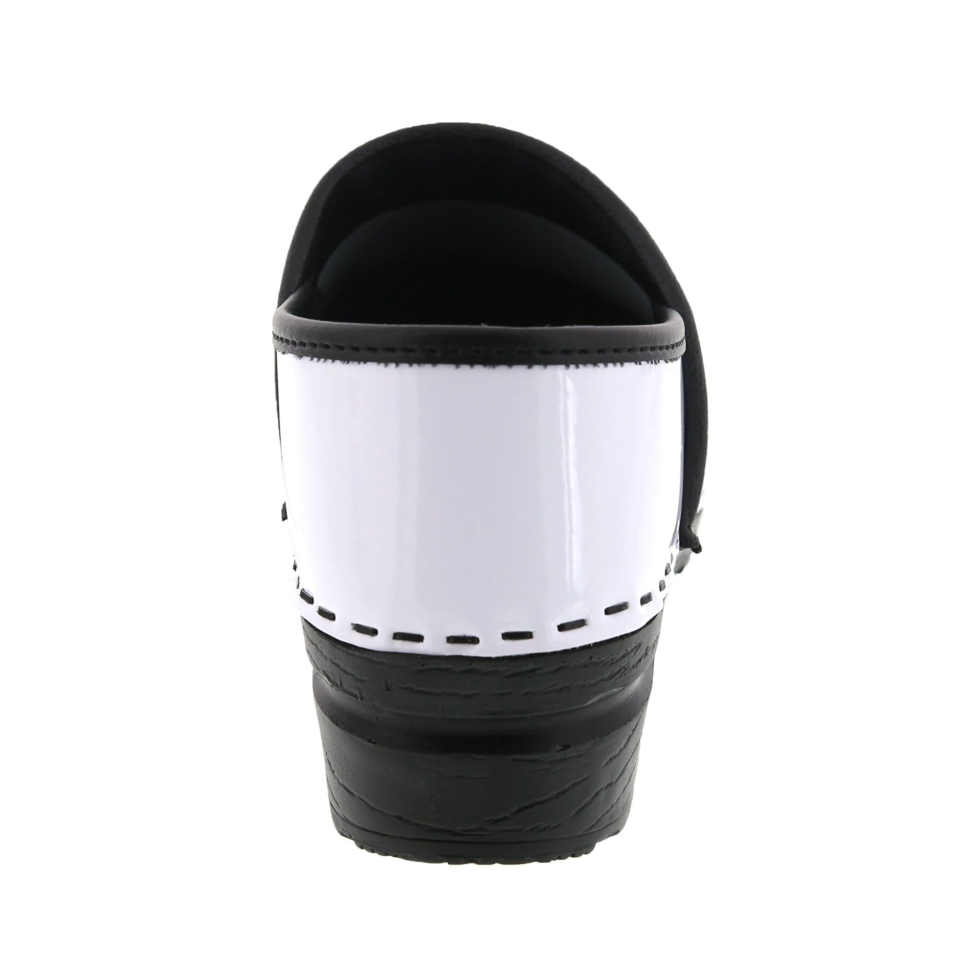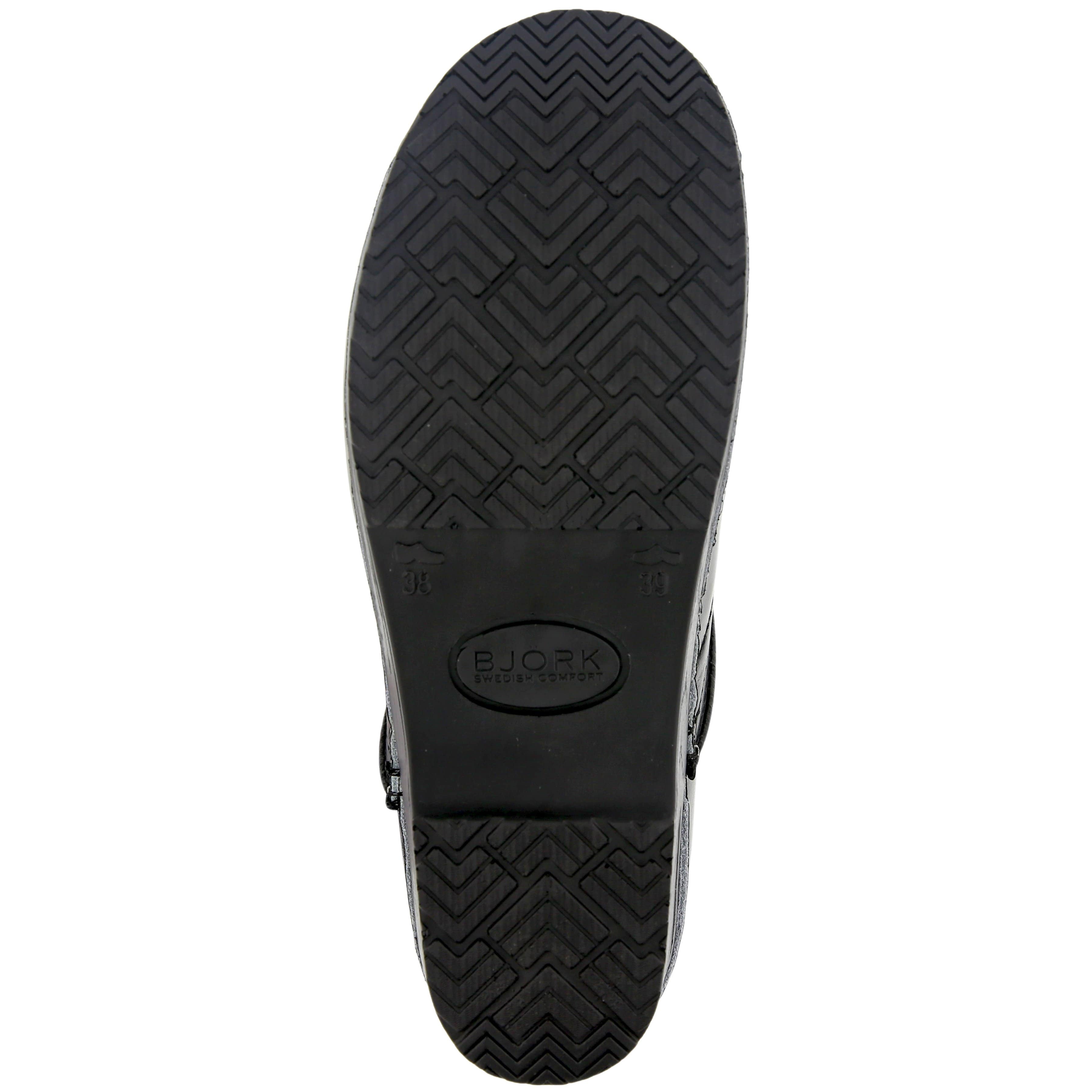 The PRO ELSA from BJORK Swedish Comfort is a classic yet functional clog, hand-made in Europe. It has a premium patent leather upper that gives it a high gloss finish. It delivers all day comfort, thanks to it's softer insole and arch support design.
