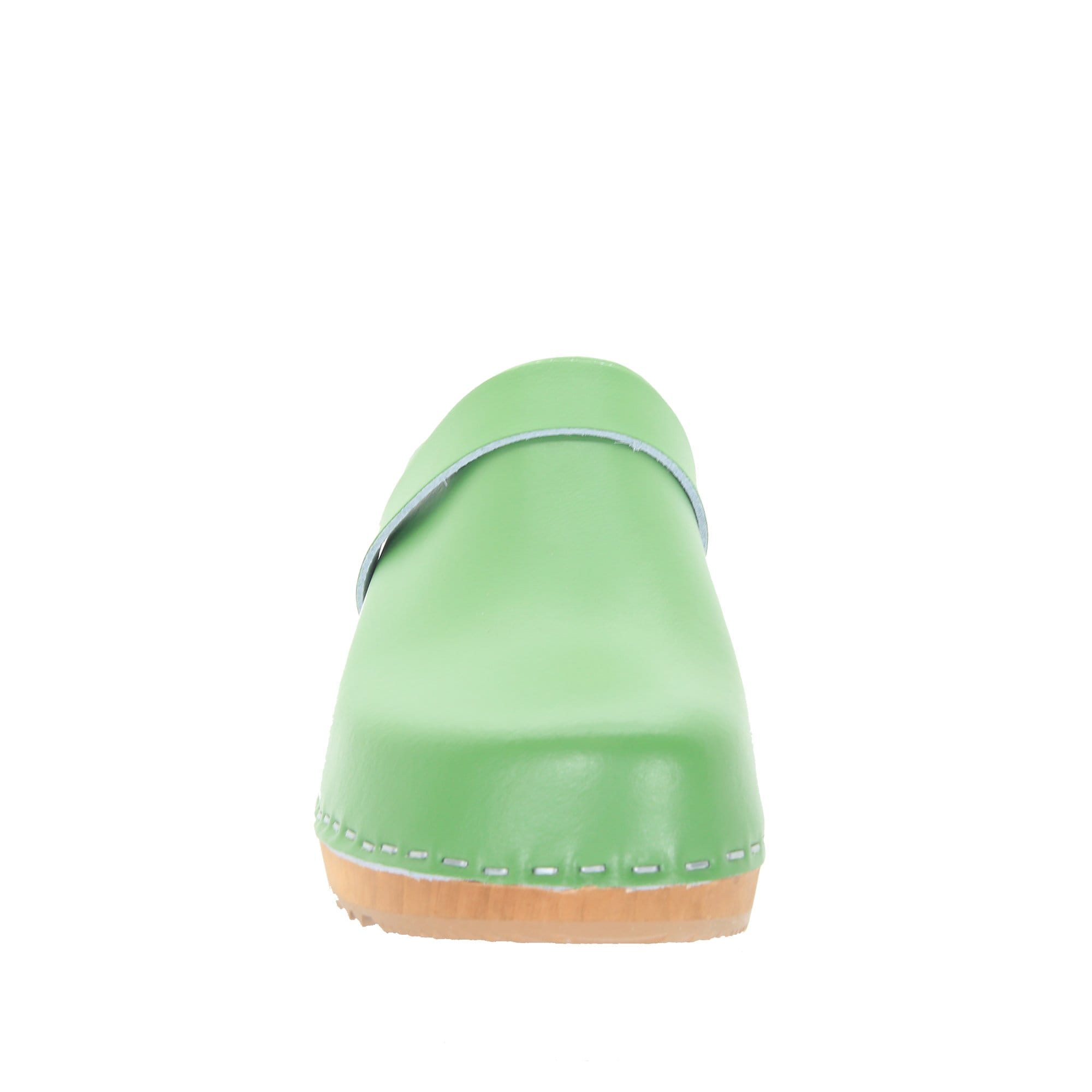 BJORK Maja Wood Open Back Green Leather Clogs
