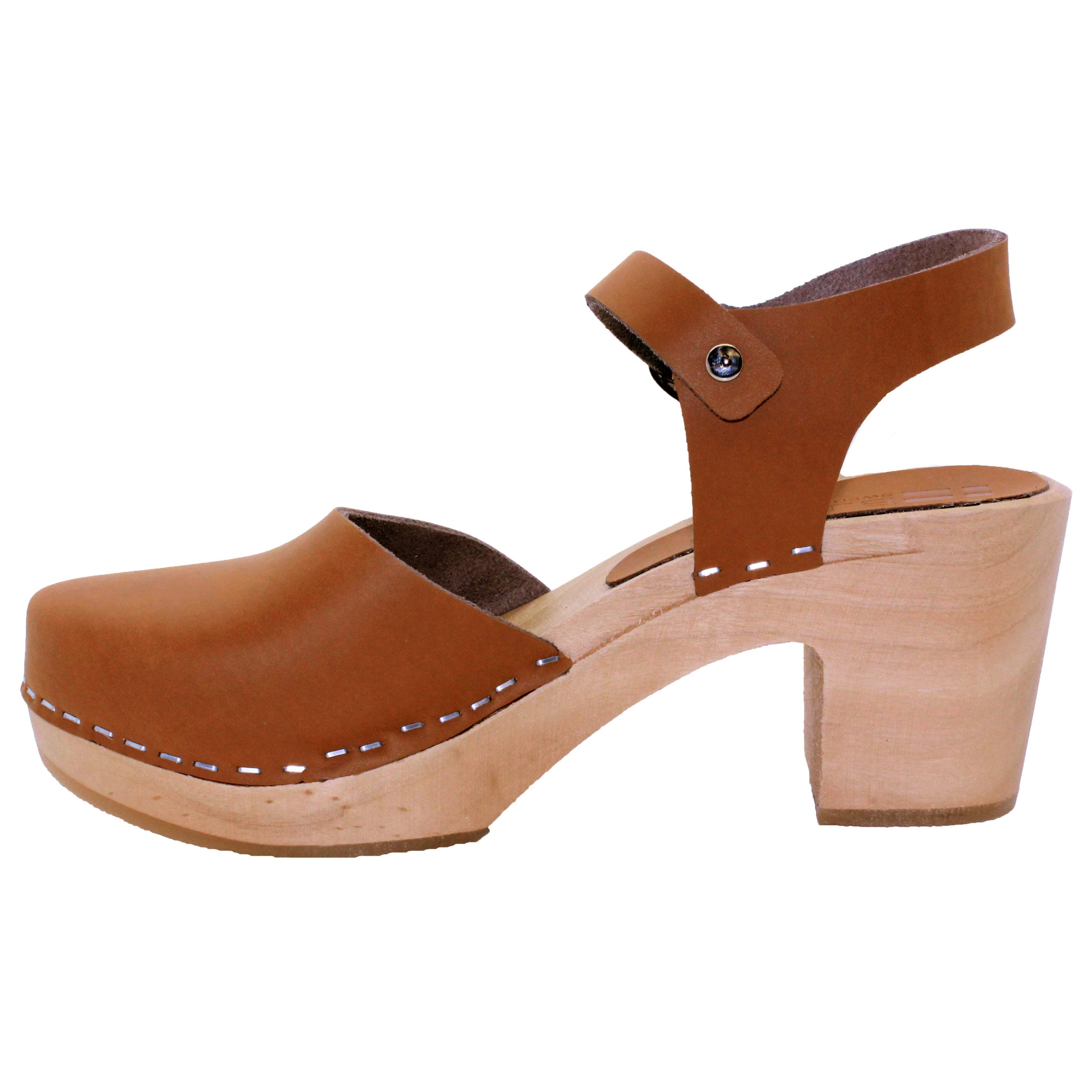 BJORK MARGARETA Swedish Wood Clog Sandals in Oiled Leather