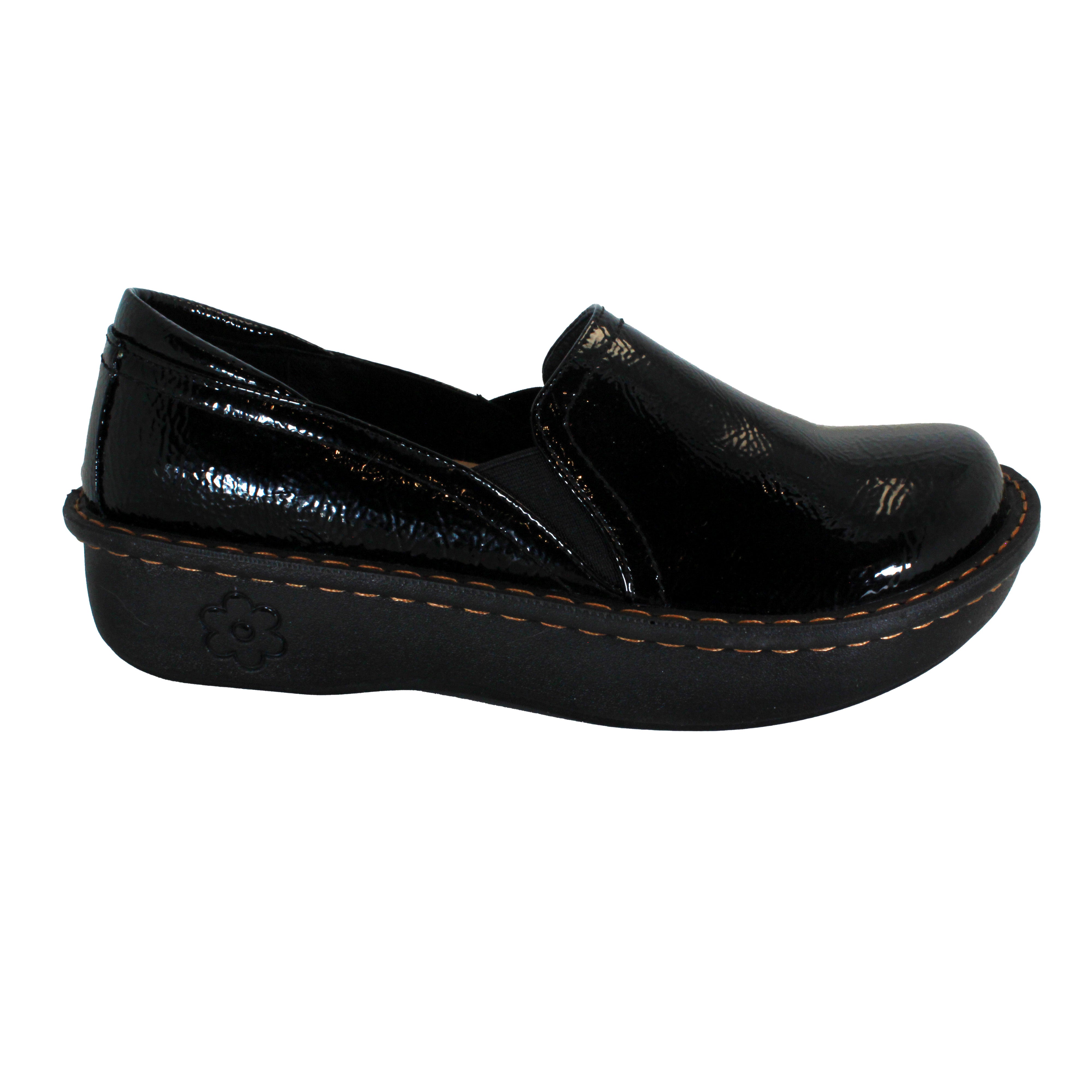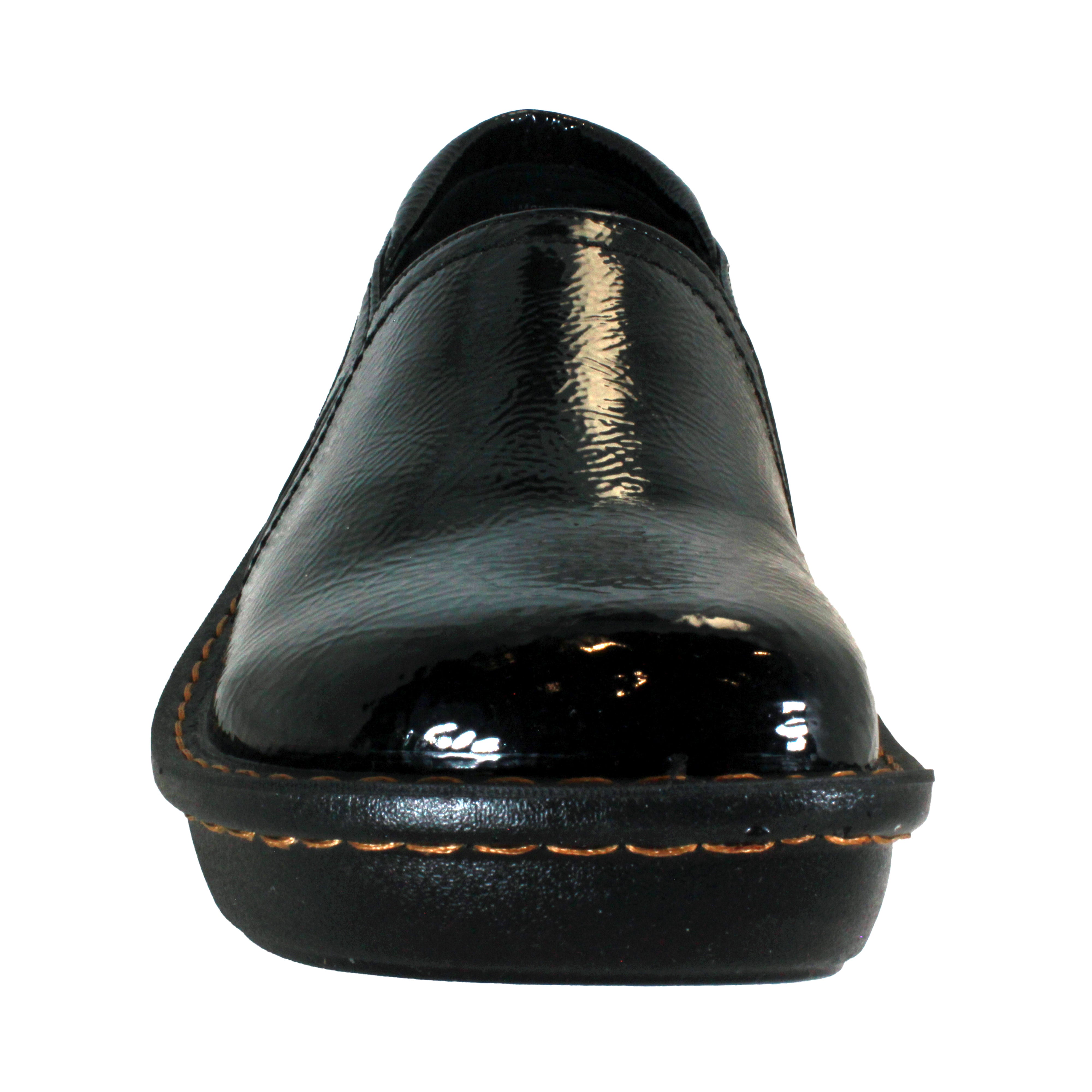 Sanosan Maria Comfort Slip-On Clogs in Black Crinkle Patent